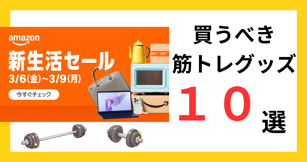 今回は2026年3月6日〜3月9日開催のAmazon新生活セールで買うべき筋トレグッズを、Amazonヘビーユーザーの私が厳選して紹介します🔥