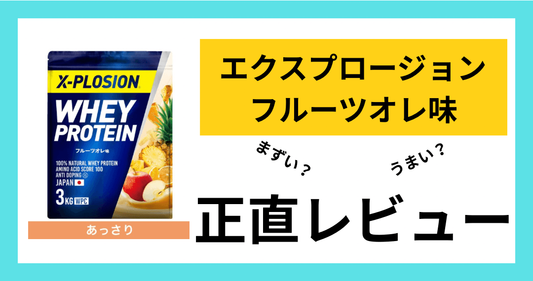 今回は、国産プロテインブランド 「エクスプロージョン」 の中でも人気のある 「フルーツオレ味」 を、実際に飲んでみた感想と、一般ユーザーの口コミを交えてレビューしていきます。