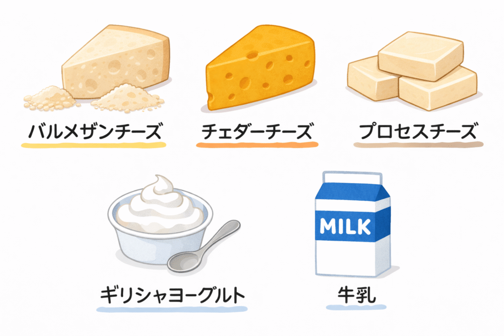 👉 チーズは高タンパクですが脂質も高め。